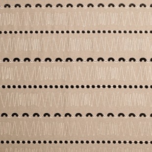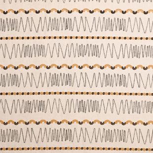 "Ben More" is an artistic masterpiece, featuring repeated embroidered lines and two-toned shapes that playfully emerge from its surface. Perfect for curtains or light upholstery, it adds character to any space effortlessly.