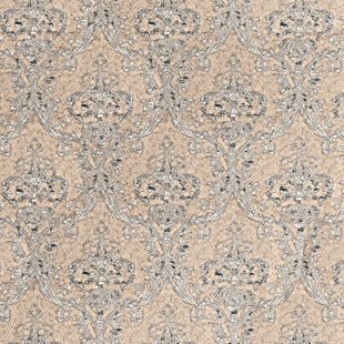 Its earthy-toned base pairs beautifully with a damask design offered in a rich palette of gray, brown, gold, and blue, creating a sophisticated and versatile look.